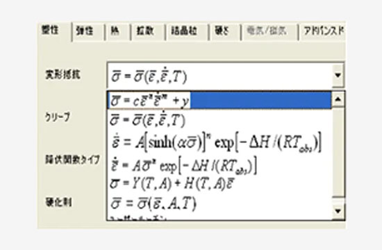 実験値や成分データから変形抵抗やTTT線図を作成できるほか、粒径やEBSD結果から結晶粒の分布・粒界を統計的に評価。さらに、マイクロモデルからのボイド予測にも対応しており、精度の高い材料モデル構築を支援します。