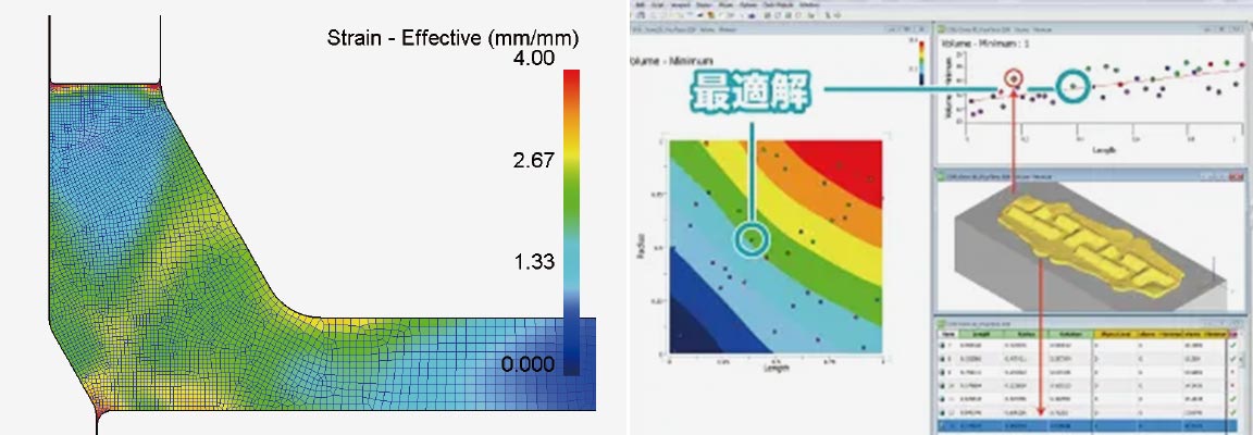従来のように一件ずつ計算を流すのではなく、過去の結果データを活用し、計算レスで傾向を予測する「機械学習(AI)」的アプローチも、DEFORMには組み込まれ始めています。