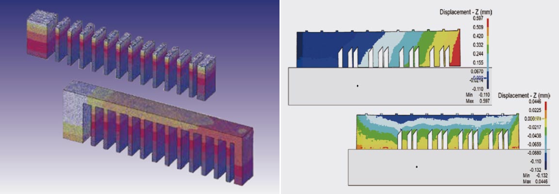 工具形状や切削条件の最適化だけでなく、素材内部に残る残留応力の解放による製品全体の変形予測にも対応。これにより、加工精度の改善や加工ラインの見直しに活用されています。 -